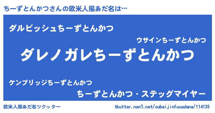 | 男性向けラノベタイトル風あだ名 | 『この素晴らしい世界にちーずとんかつを!』 |