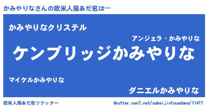 | ファンタジー風あだ名 | 『ゼカミトゥ』『エターナルカミヤリナー』 |
