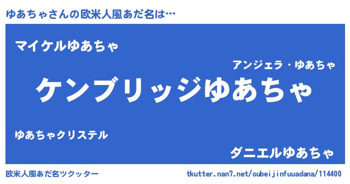 | 男性向けラノベタイトル風あだ名 | 『Re:ゆあちゃから始める異世界生活』 |