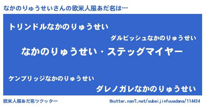 | 男性向けラノベタイトル風あだ名 | 『うちのなかのりゅうせいが世界を掌握している!』 |