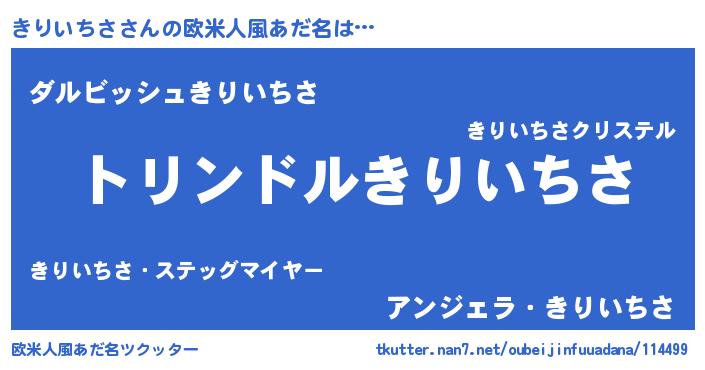 | 男性向けラノベタイトル風あだ名 | 『転生したらきりいちさだった件』 |