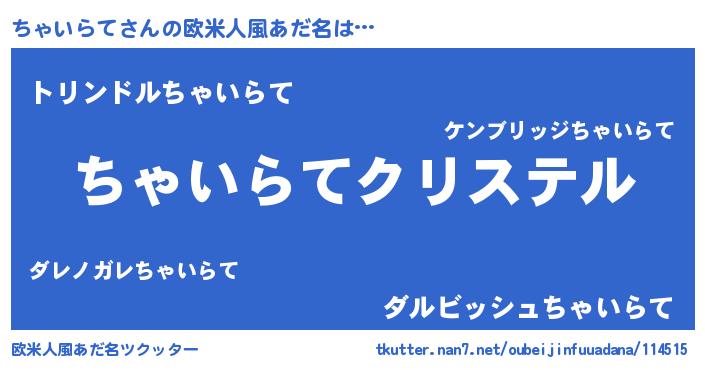| 意味不明あだ名 | 『ちゃいらてフォーエバー』 |