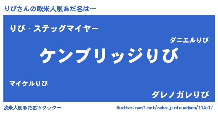 | 男性向けラノベタイトル風あだ名 | 『Re:りびから始める異世界生活』 |