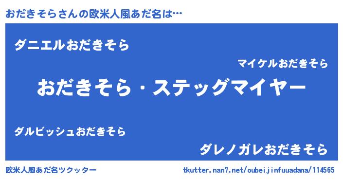 | 男性向けラノベタイトル風あだ名 | 『うちのおだきそらが世界を掌握している!』 |