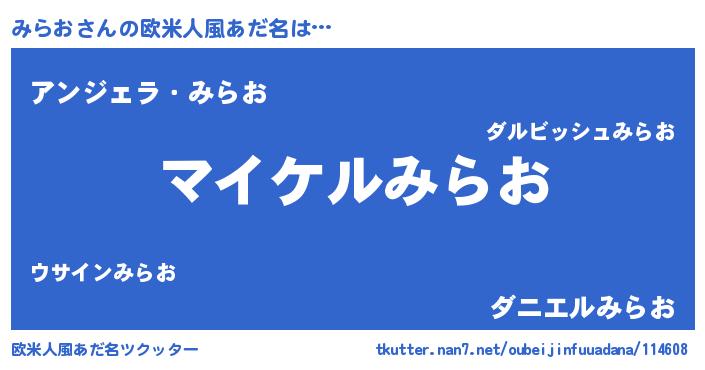 | ヒーロー風カッコイイあだ名 | 『スーパーミラオ』『慈愛の使者みらお』 |