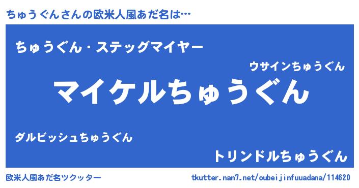 | ヒーロー風カッコイイあだ名 | 『スーパーチュウグン』『幻影騎士チュ』 |