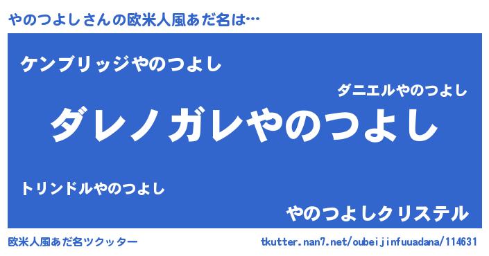 | 男性向けラノベタイトル風あだ名 | 『魔弾の王とやのつよし』 |