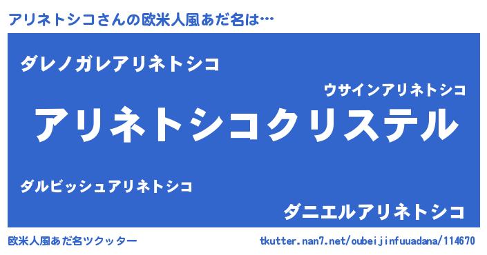 | ファンタジー風あだ名 | 『エターナルアリネトシコー』 |