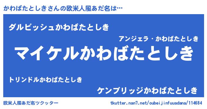 | ヒーロー風カッコイイあだ名 | 『スーパーカワバタトシキ』 |