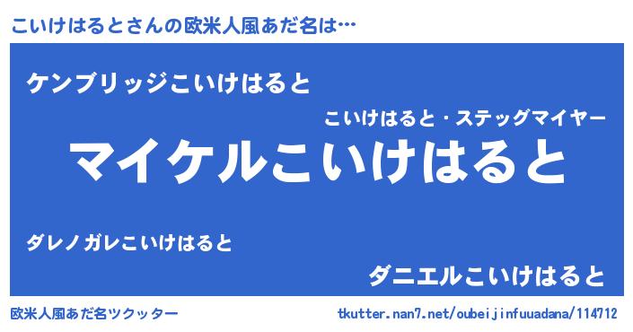 | 男性向けラノベタイトル風あだ名 | 『コイケハルトアートオンライン』 |