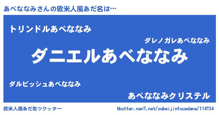 | 男性向けラノベタイトル風あだ名 | 『ノーゲーム・ノーアベナナミ』 |