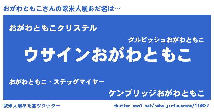 | 女子向けラノベタイトル風あだ名 | 『おがわともこの卵を拾いまして』 |