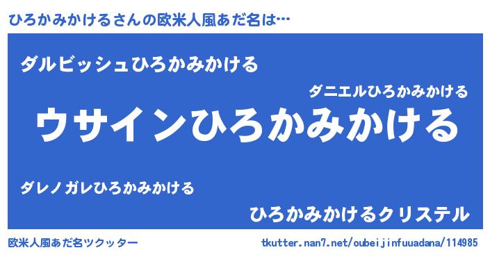 | 男性向けラノベタイトル風あだ名 | 『ひろかみかけるの嫁は女の子じゃないと思った?』 |