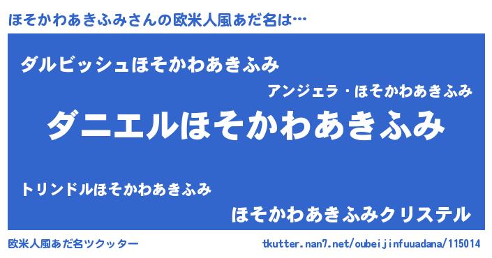 | ヘコむあだ名 | 『ほそかわあきふみ(笑)』『酢こんぶ』 |