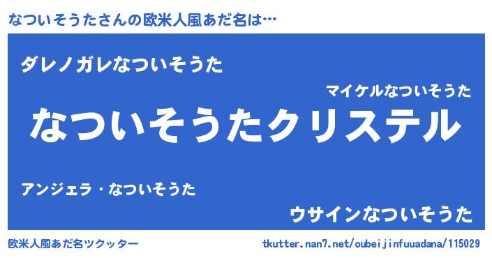 | 男性向けラノベタイトル風あだ名 | 『やはりなついそうたの青春ラブコメはまちがっている 』 |