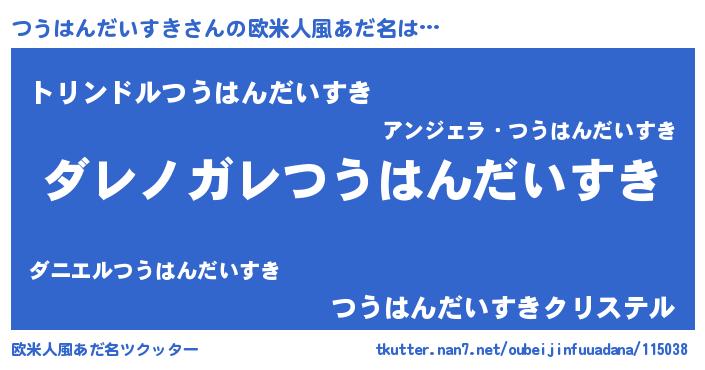 | 意味不明あだ名 | 『住所不定無職つうはんだいすき(39歳)』 |