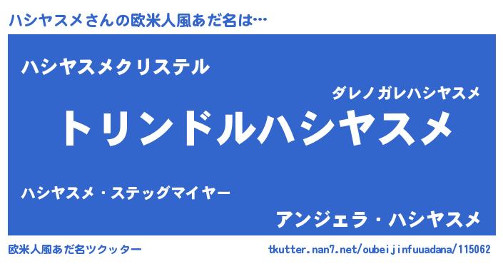 | 男性向けラノベタイトル風あだ名 | 『転生したらハシヤスメだった件』 |