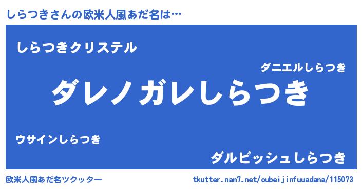 | 男性向けラノベタイトル風あだ名 | 『この素晴らしい世界にしらつきを!』 |