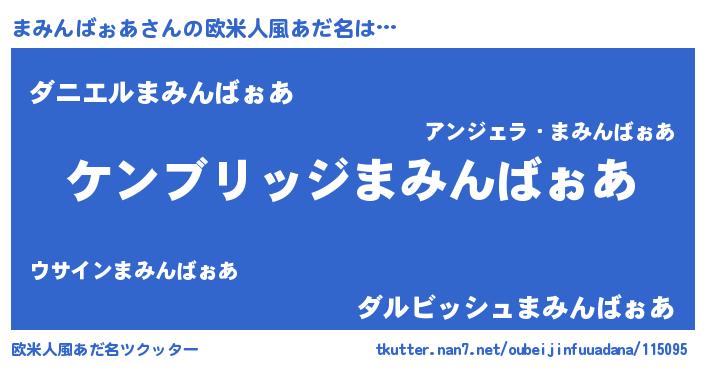 | 男性向けラノベタイトル風あだ名 | 『Re:まみんばぉあから始める異世界生活』 |