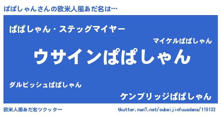 | 男性向けラノベタイトル風あだ名 | 『ぱぱしゃんの嫁は女の子じゃないと思った?』 |