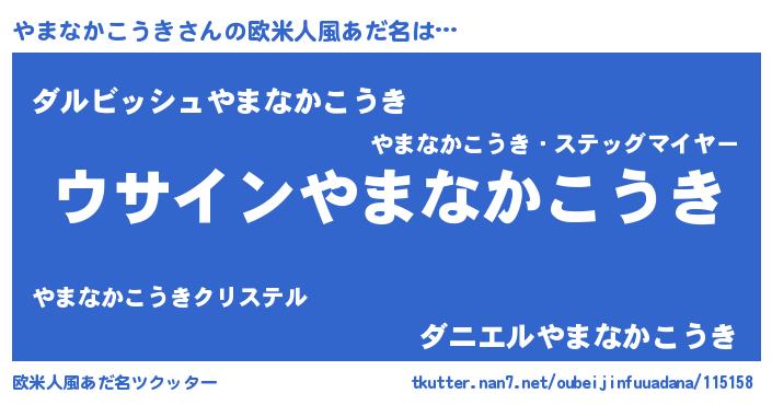| 男性向けラノベタイトル風あだ名 | 『やまなかこうきの嫁は女の子じゃないと思った?』 |