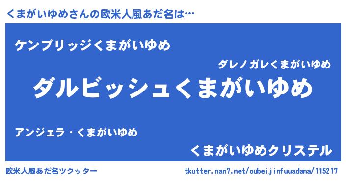 | 男性向けラノベタイトル風あだ名 | 『くまがいゆめという概念が存在しない退屈な世界 』 |