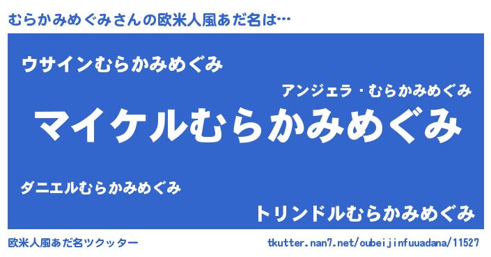 | 女子向けラノベタイトル風あだ名 | 『むらかみめぐみ姫と円卓の騎士』 |