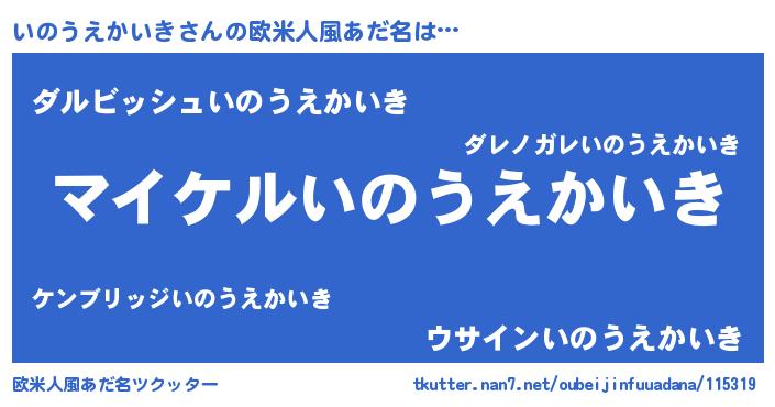 | 男性向けラノベタイトル風あだ名 | 『いのうえかいきの憂鬱』 |