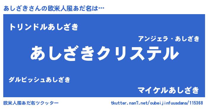 | ファンタジー風あだ名 | 『エターナルアシザキー』『アシフェル』 |