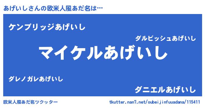 | ヒーロー風カッコイイあだ名 | 『スーパーアゲイシ』『最強戦士アゲイシ』 |