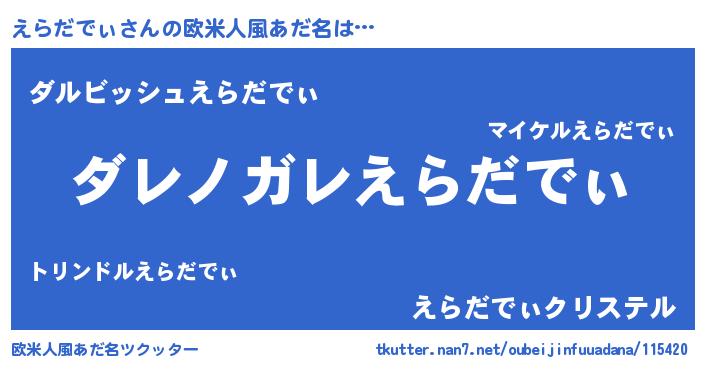 | 意味不明あだ名 | 『住所不定無職えらだでぃ(71歳)』 |