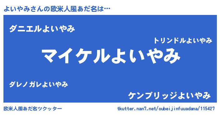 | 意味不明あだ名 | 『ペロリンよいやみ』『自称よいやみ』 |