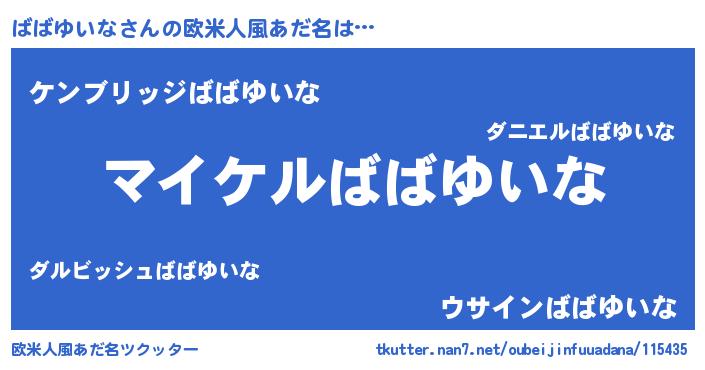| 男性向けラノベタイトル風あだ名 | 『ババユイナアートオンライン』 |
