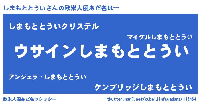| 女子向けラノベタイトル風あだ名 | 『しまもととういの卵を拾いまして』 |