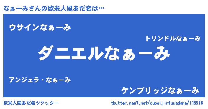 | 男性向けラノベタイトル風あだ名 | 『おまえをオタクにしてやるから、俺をなぁーみにしてくれ! 』 |