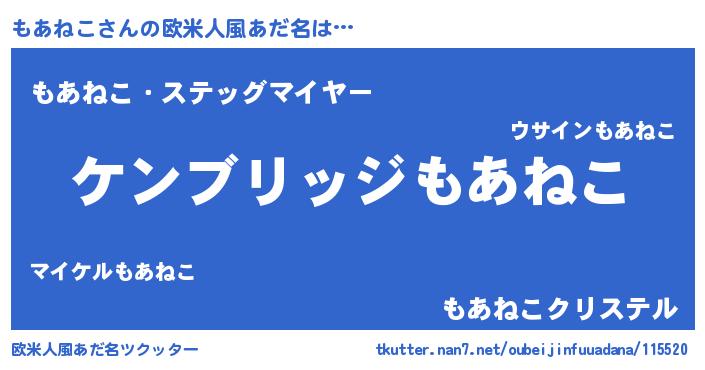 | 意味不明あだ名 | 『自称もあねこ』『もあねこフォーエバー』 |