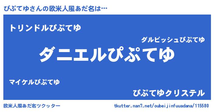 | 男性向けラノベタイトル風あだ名 | 『おまえをオタクにしてやるから、俺をぴぷてゆにしてくれ! 』 |