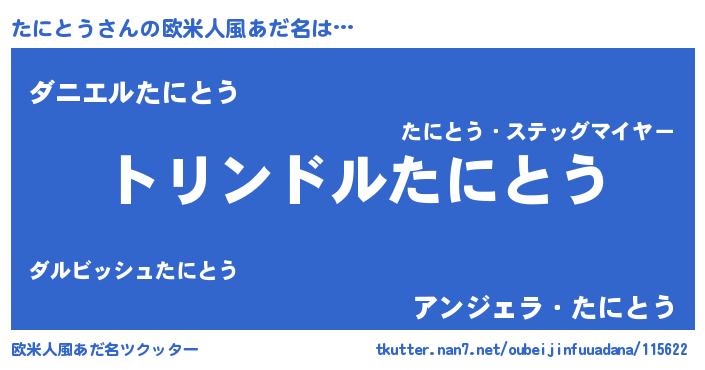 | 男性向けラノベタイトル風あだ名 | 『タニトウスレイヤー』 |