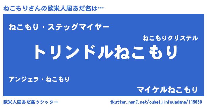 | 男性向けラノベタイトル風あだ名 | 『転生したらねこもりだった件』 |