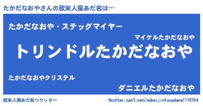 | 男性向けラノベタイトル風あだ名 | 『転生したらたかだなおやだった件』 |