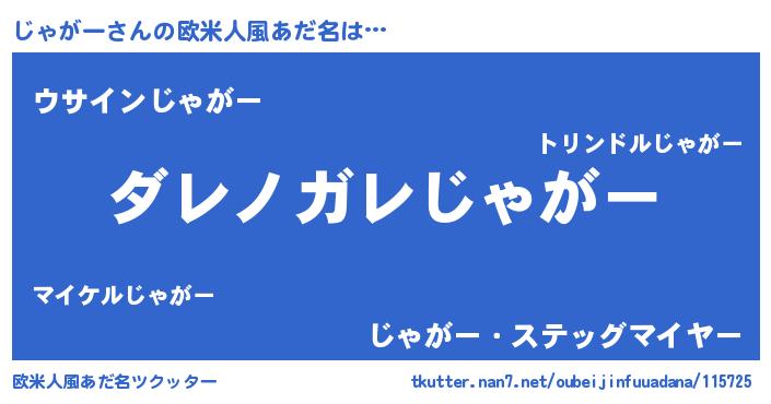 | 意味不明あだ名 | 『住所不定無職じゃがー(7歳)』 |