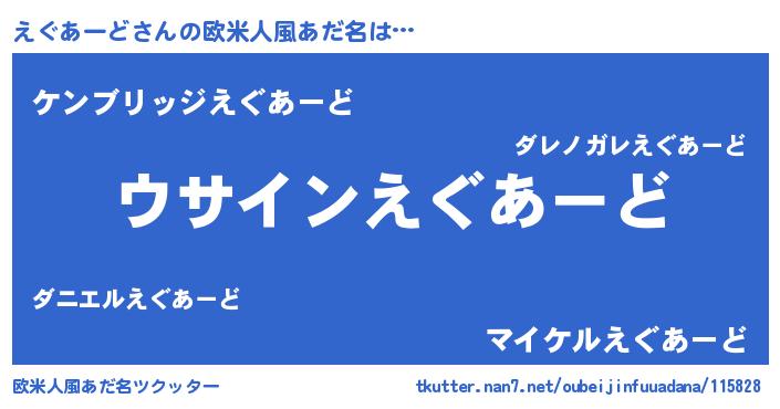 | 意味不明あだ名 | 『とにかく怪しいえぐあーど』 |