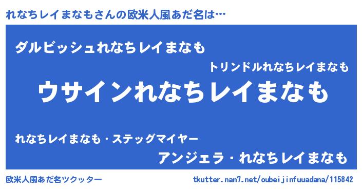 | ヘコむあだ名 | 『れなっ子』『れなちレイまなも(苦笑)』 |