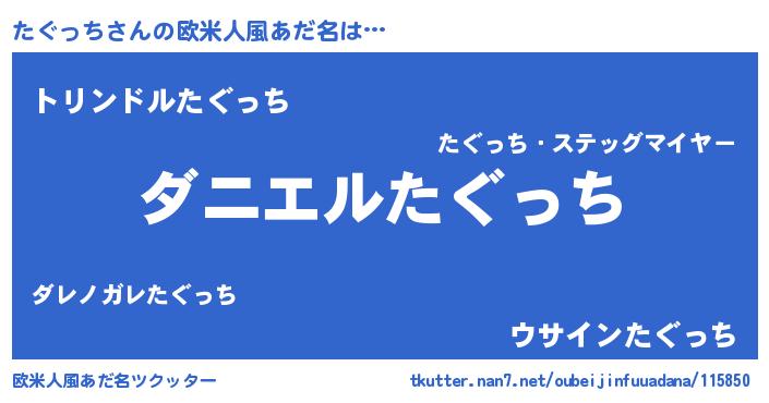 | 男性向けラノベタイトル風あだ名 | 『おまえをオタクにしてやるから、俺をたぐっちにしてくれ! 』 |