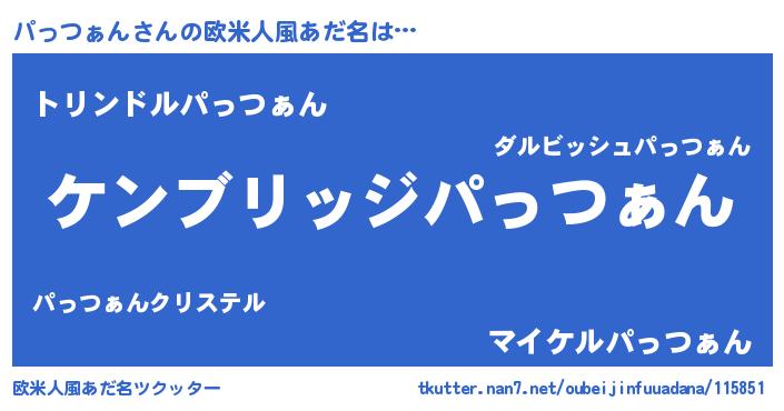 | ヘコむあだ名 | 『パっふぇ~』『パっつぁん(震え声)』 |