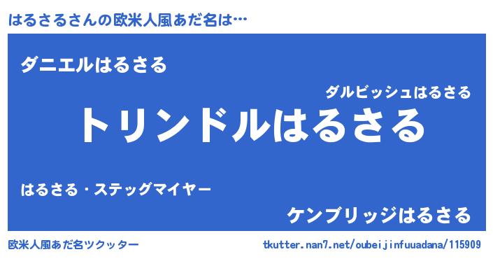 | 男性向けラノベタイトル風あだ名 | 『はるさる~年齢イコール彼女いない歴の魔法使い~』 |