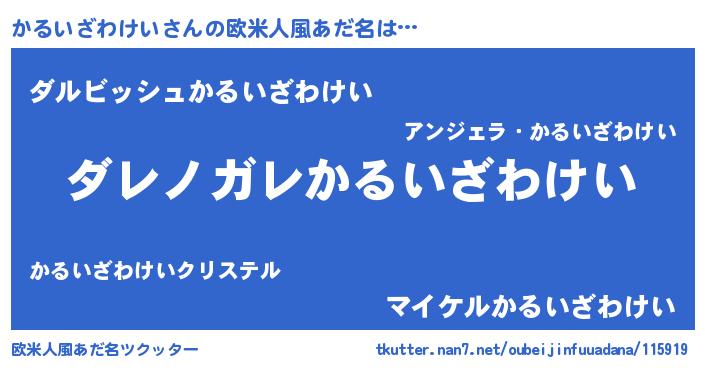 | 意味不明あだ名 | 『住所不定無職かるいざわけい(12歳)』 |