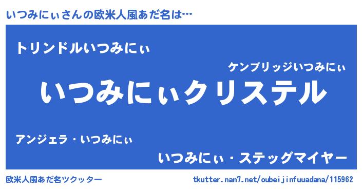 | 男性向けラノベタイトル風あだ名 | 『やはりいつみにぃの青春ラブコメはまちがっている 』 |