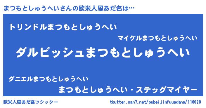 | 意味不明あだ名 | 『永久保存まつもとしゅうへい』 |