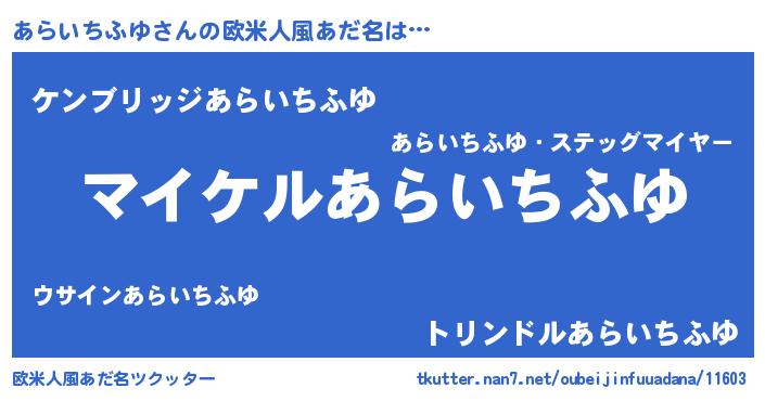 | 男性向けラノベタイトル風あだ名 | 『あらいちふゆの憂鬱』 |